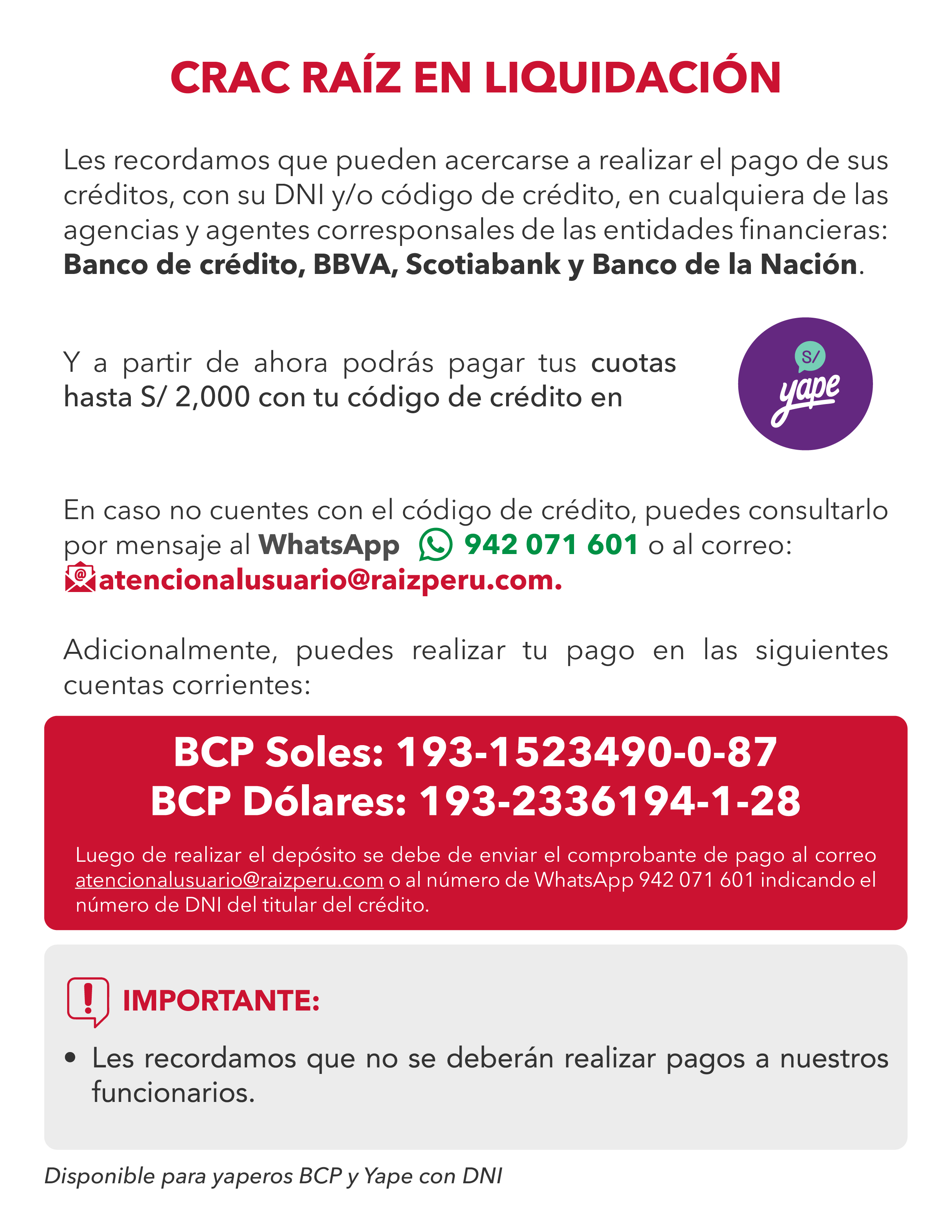 Ver información en: https://www.sbs.gob.pe/crac-raiz-en-liquidacion